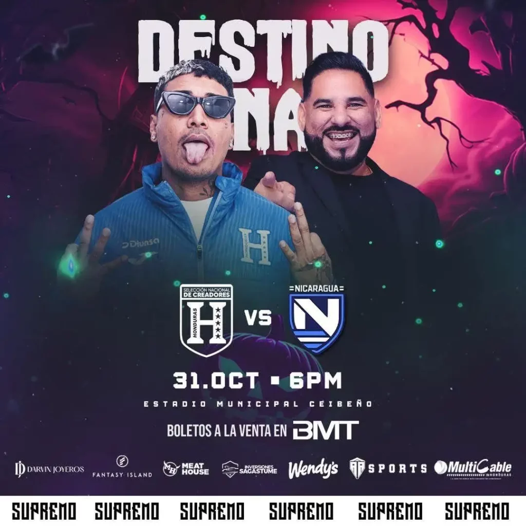 El talento tiktokero nicaragüense se presentará este jueves 31 de octubre en el Estadio Municipal Ceibeño, en La Ceiba, Honduras, a las 6:00 p. m., donde la Selección de Creadores de Nicaragua enfrentará a la de Honduras en el duelo “Destino Final”.