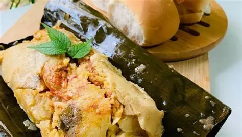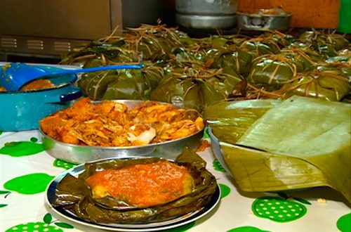 - Todo se envuelve en hojas de plátano y se cocina al vapor por varias horas.