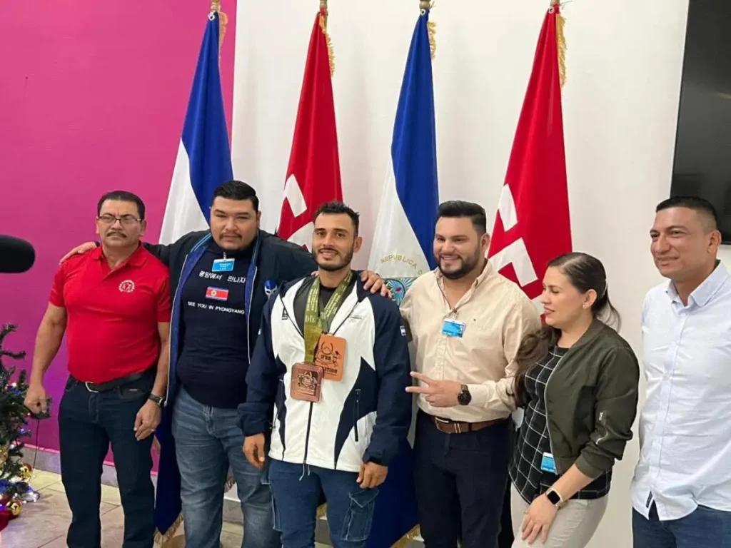 El compañero Daniel Sequeira, en representación del Instituto Nicaragüense de Deportes y del Gobierno de la República, encabezó la cálida bienvenida en el Aeropuerto Internacional Augusto C. Sandino, en Managua.