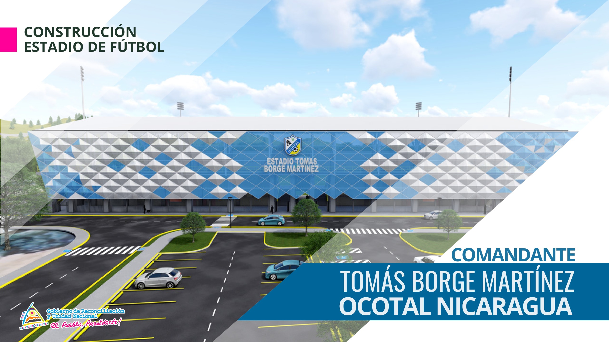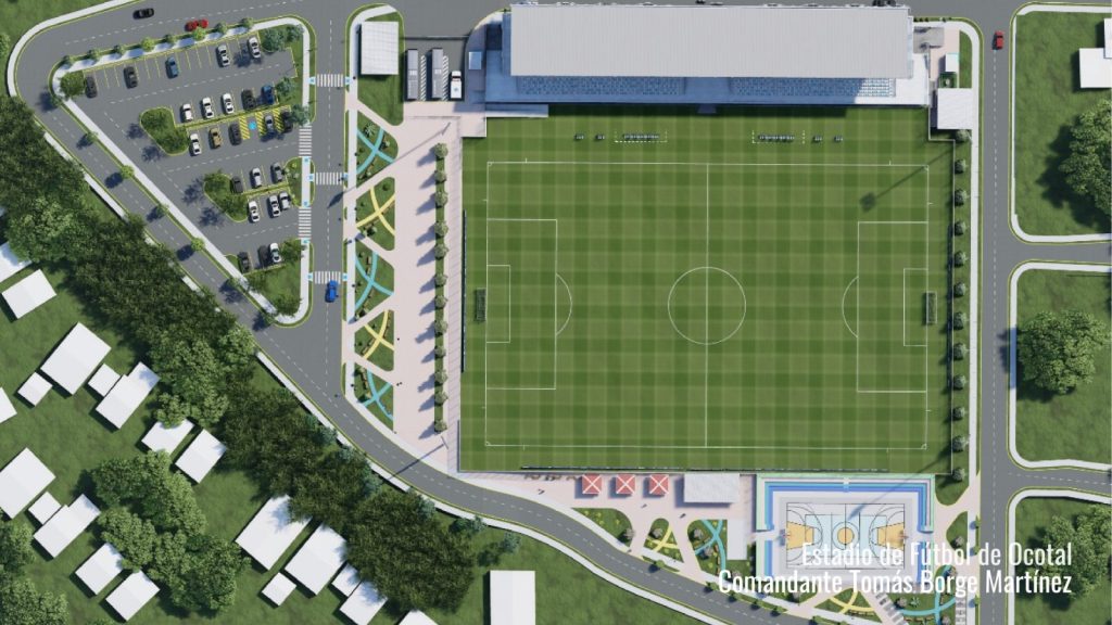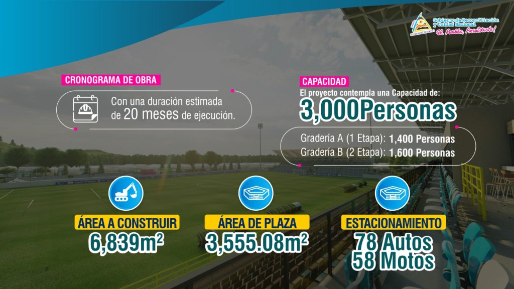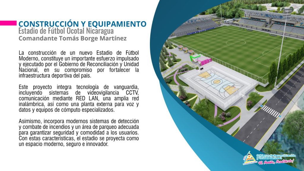 Ocotal, Nueva Segovia. El Gobierno de Reconciliación y Unidad Nacional impulsa la construcción y equipamiento del Estadio de Fútbol Comandante Tomás Borge Martínez en la ciudad de Ocotal, un proyecto de infraestructura deportiva que busca fortalecer las condiciones para la práctica del fútbol y el desarrollo de actividades recreativas y competitivas en el norte del país. La obra tendrá una duración estimada de 20 meses y una capacidad total para 3,000 espectadores .