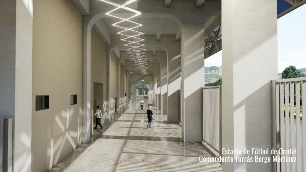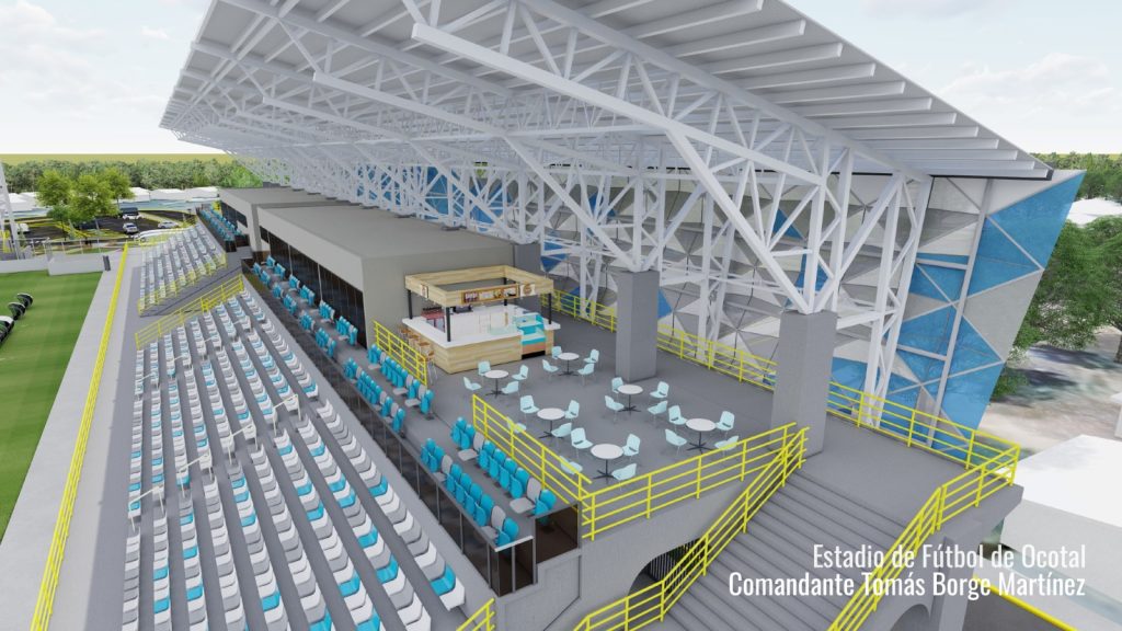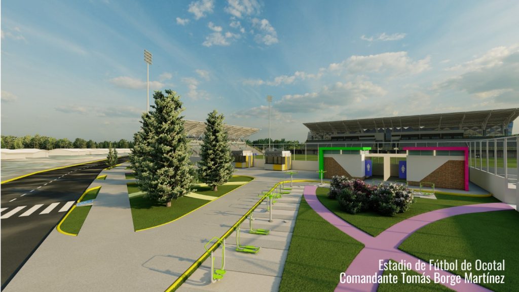 El nuevo estadio se desarrollará en un área de terreno de 35,146.19 metros cuadrados, con una superficie construida de 6,839 metros cuadrados y una plaza de acceso de 3,555.08 metros cuadrados. El campo de juego contará con grama artificial, sistemas de iluminación deportiva y de emergencia, además de infraestructura para comunicaciones internas, audio moderno y cabina de medios, lo que permitirá albergar eventos deportivos con estándares técnicos actualizados.