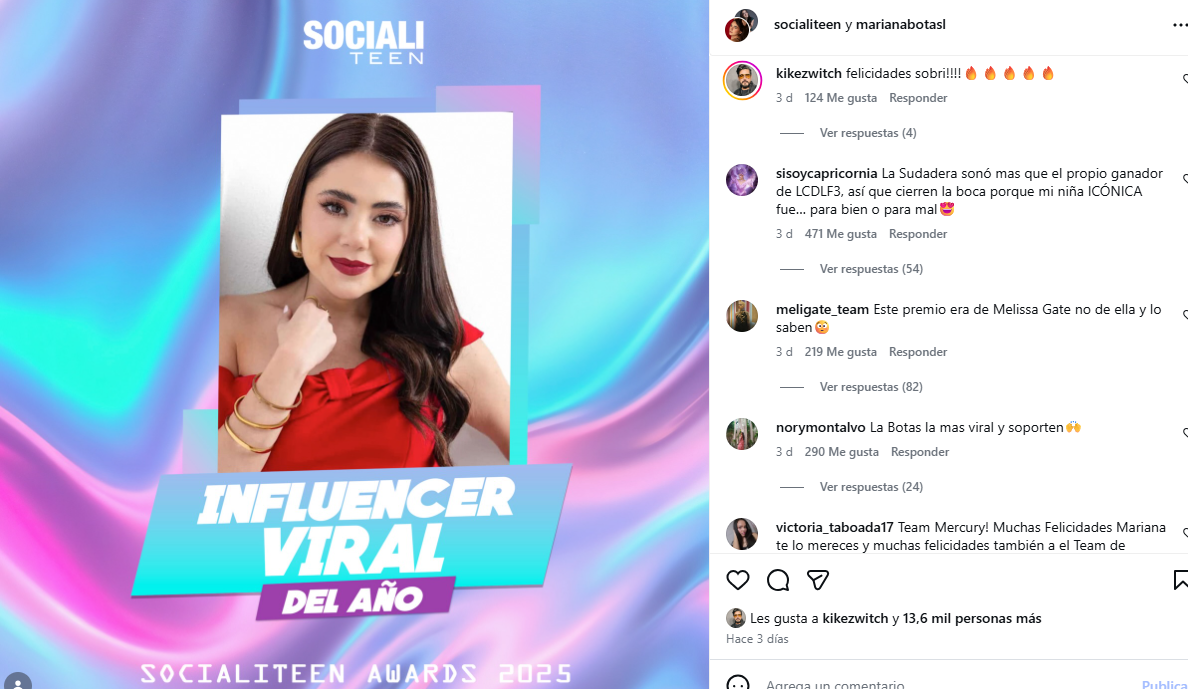 Tras darse a conocer el premio, en plataformas como X (antes Twitter), Instagram y TikTok comenzaron a circular mensajes en los que algunos internautas aseguraban que el reconocimiento había sido “comprado”, minimizando el trabajo digital de la actriz y cuestionando su impacto real en redes sociales. Los comentarios no tardaron en viralizarse, generando un intenso debate. Entre las principales críticas, usuarios señalaron que otros creadores de contenido tendrían mayor alcance o viralidad que Mariana Botas. Sin embargo, muchos olvidaron que la actriz ha logrado construir una comunidad sólida, combinando humor, cercanía y constancia en sus publicaciones, factores que también influyen en este tipo de reconocimientos.